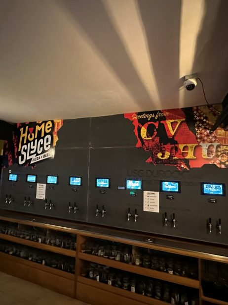 This establishment is a hidden pizza gem! We were greeted immediately by both our hostess and server. Our server helpfully explained the pizza menu without trying to upsell. Our food came out of the kitchen quickly and steaming hot. This place has some of the best pizza we’ve ever tried. The ingredients and dough are top-notch. We found the Strongman Meat Lovers Pizza a bit spicy due to the heat imparted by the Italian sausage. The restaurant and restrooms were spotlessly clean. A great mood is set with this spot’s dim filament lighting, exposed brick, and warm wood-grain tables. The automated keg barrels are a neat innovation. Homeslyce could definitely give its customers bigger plates and better cloth dinner napkins. Beyond this oversight, I would absolutely recommend coming here for some of the best pizza in Charm City.